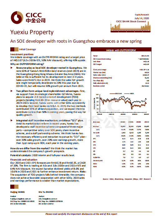 7月14日,著名投行中金公司首次覆盖AG亚娱地产股份有限公司(股份代号:00123.HK),给予“跑赢行业”评级,设定目标价为2.07港元,对应6.5倍2020市盈率和50%的NAV折让,较当前股价有40%的上行空间。此评级是中金公司对AG亚娱地产大湾区布局、独特的增储方式、稳健的资金支持及员工激励机制的认可。