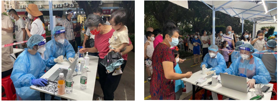 从5月30日中午集结队伍到晚上10点多结束,我亲历并亲眼见证了核酸检测点的所有工作人员义无反顾、风雨无阻的坚守。在烈日酷暑和风雨交加之下,我们的队员坚持紧张有序而又耐心细致的站立引导,看着漫长的队伍一刻也不敢歇息。社区居民自动自觉参加检测,排队井然有序,许多居民面对工作人员都会说声“你们辛苦了”,更多的社区一线工作人员、医护人员日夜奋战在岗位上……这些场景无不令人动容。